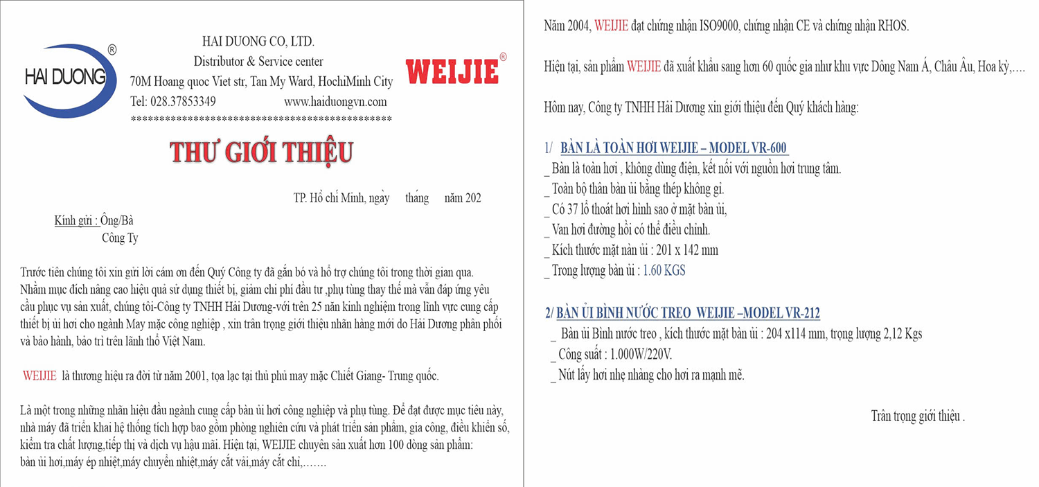 Công ty TNHH Hải Dương là nhà tư vấn thiết kế và cung cấp các dây chuyền thiết bị trong ngành may mặc, đặc biệt là trong lĩnh vực ủi (là) & thiết bị giặt công nghiệp.
